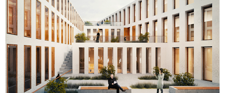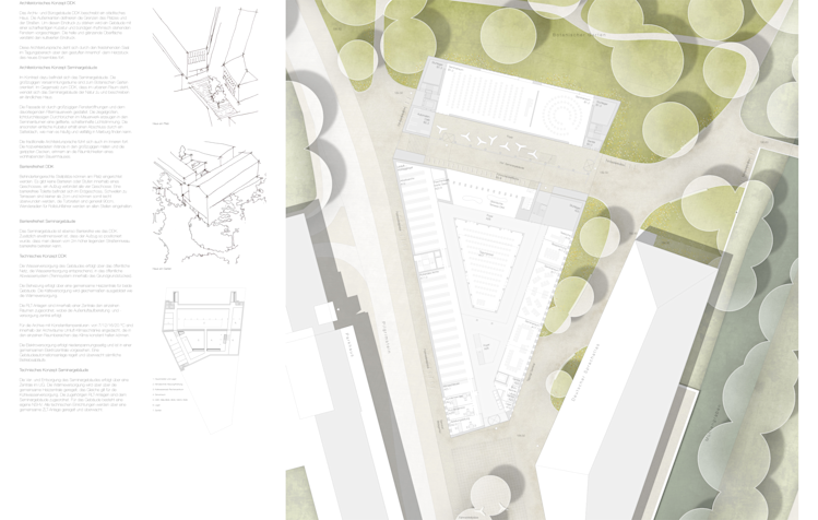 Der Jurybericht beschreibt die Arbeit wie folgt: Die Eingänge vom DDK sind richtig am südlichen Platz angeordnet. Die markante Ausbildung eines getreppten Innenhofs führt zu sehr guten Belichtungsverhältnissen in allen Gebäudebereichen.