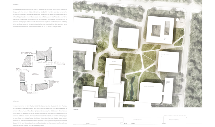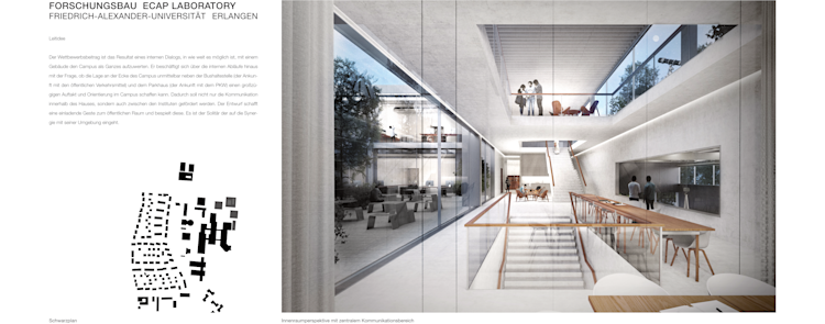 Wettbewerbsbeitrag für den neuen Standort des Erlangen Centre for Astroparticle Physics der Friedrich-Alexander-Universität. Der Jurybericht beschreibt den Entwurf wie folgt: