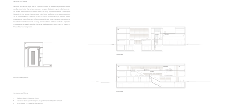 Die innere Gestaltung ist geprägt von einem querliegenden Eingangsbereich, der attraktiv und inspirierend über die Geschosse in die Tiefe des Baukörpers führt. Entlang dieser Wegeführung sind die Kommunikationszonen und Ein- sowie Ausblicke, im Sinne einer Kommunikationsachse, attraktiv angeordnet.