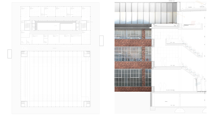 Im Rahmen eines offenen Realisierungswettbewerbs sollten Entwürfe für den Um- und Neubau des Industriedenkmals zur Nutzung als Wettkampf-, Vereins- und Schulsporthalle sowie als Berufsschulzentrum eingereicht werden.